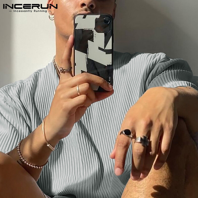 RisingHope Korea INCERUN 2PCS Mens Short Sleeve T Shirts Short Sleerwear Sets Sports Tracksuit Lounge Suit